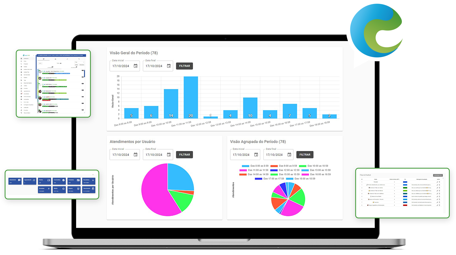 Acompanhe todos os atendimentos de forma supervisionada e em tempo real.
